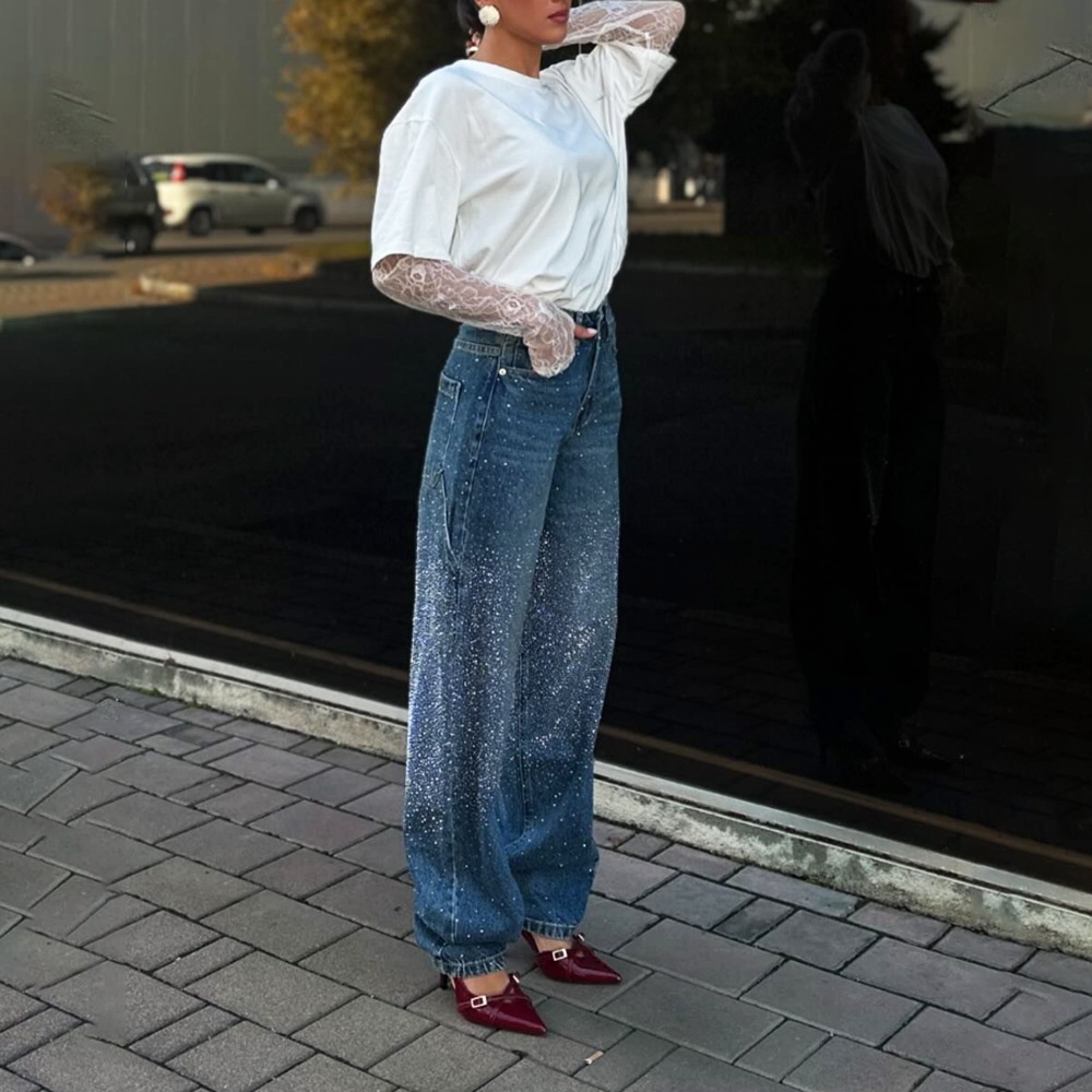 Niche Hot Drilling Versatile Personality Straight-leg Pants Female